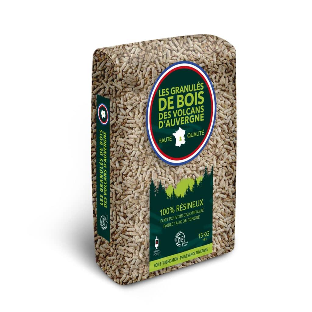 GRANULES DE BOIS 100% RESINEUX VOLCANS D’AUVERGNE DIN PLUS 7A470 - SAC DE 15 KG